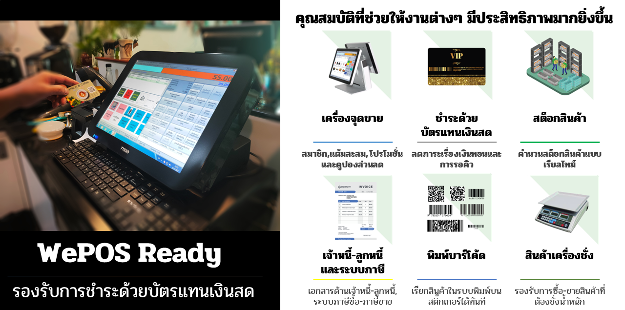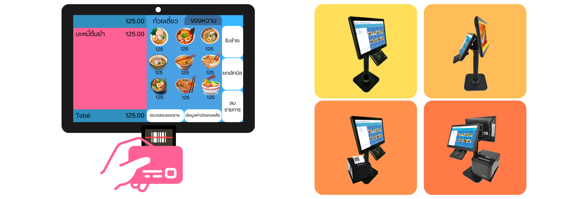 ระบบ POS ช่วยให้การรับออเดอร์และคิดเงินเป็นไปอย่างรวดเร็วและแม่นยำ พนักงานเพียงแค่เลือกเมนูจากหน้าจอ ระบบจะคำนวณราคาและส่วนลดให้อัตโนมัติ ทำให้ลูกค้าไม่ต้องรอนานและลดโอกาสในการคิดเงินผิดพลาด โดยเฉพาะในช่วงเวลาที่ลูกค้าเยอะ ๆ นอกจากนี้ระบบ POS สามารถ ตัดสต็อกวัตถุดิบอัตโนมัติ ทุกครั้งที่มีการขาย เหมาะทั้งกับสินค้าสำเร็จรูป และสินค้าที่ต้องตัดวัตถุดิบตอนขาย เช่น ร้านกาแฟ ทำให้เจ้าของร้านรู้ปริมาณวัตถุดิบที่เหลืออยู่ได้แบบเรียลไทม์ และยังช่วยแจ้งเตือนเมื่อวัตถุดิบใกล้หมด ทำให้สามารถวางแผนการสั่งซื้อได้อย่างเหมาะสม ลดปัญหาของขาด และยังรองรับการชำระเงินผ่านช่องทางอื่น ๆ ได้อย่างครบครัน เช่น บัตรเครดิต, QR Code (PromptPay), หรือแอปพลิเคชันกระเป๋าเงินดิจิทัลต่าง ๆ ซึ่งช่วยอำนวยความสะดวกให้กับลูกค้าในยุคสังคมไร้เงินสด