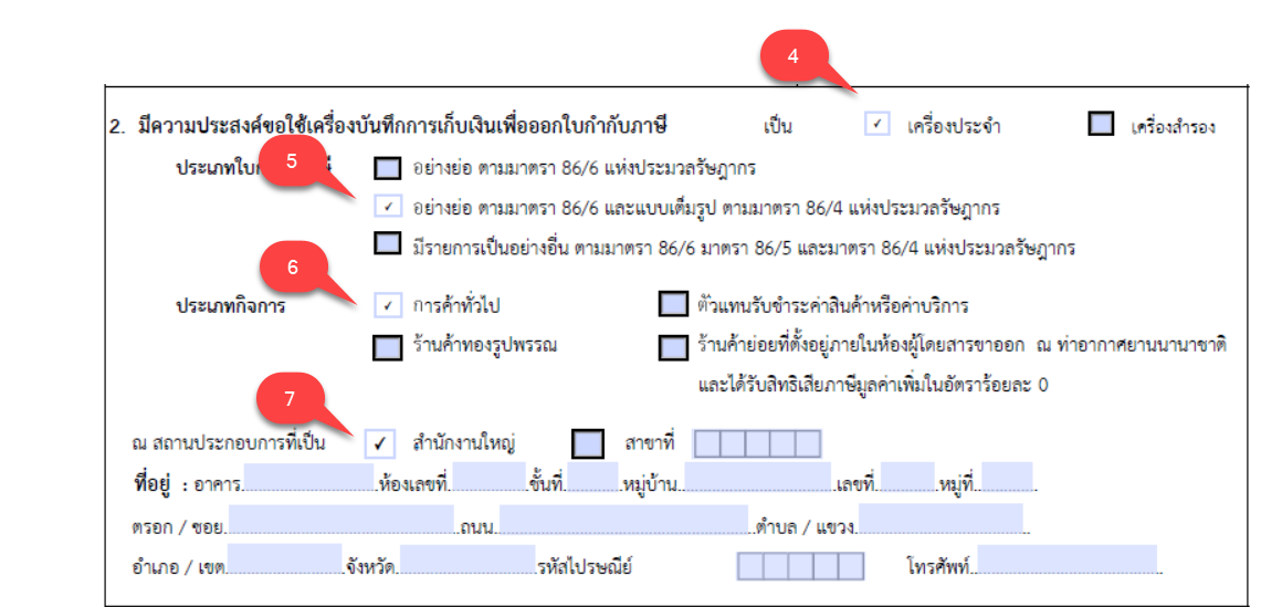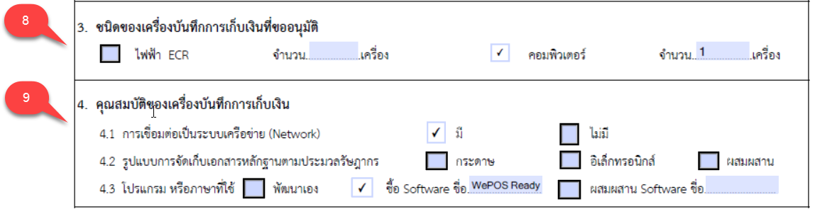 จดหมายเลขประจำเครื่องแคชเชียร์ (Serial Number) โดยจดตามจำนวนจุดที่ติดตั้งจริง โดยประกอบไปด้วยตัวเครื่องที่ใช้งานระบบ POS และเครื่องพิมพ์ใบเสร็จ (เรียงตามลำดับ)