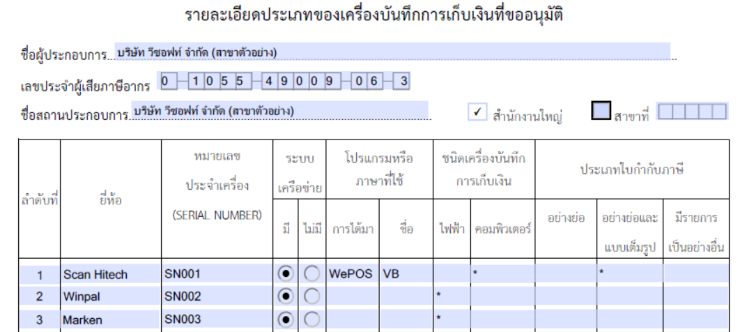 รายละเอียดประเภทของเครื่องบันทึกการเก็บเงินที่ขออนุมัติ (เอกสารแนบมากับ ภ.พ.06)