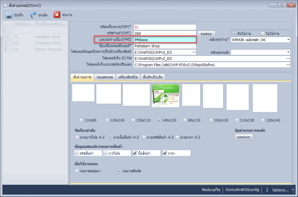 การกรอกรายละเอียดประเภทของเครื่อง POS