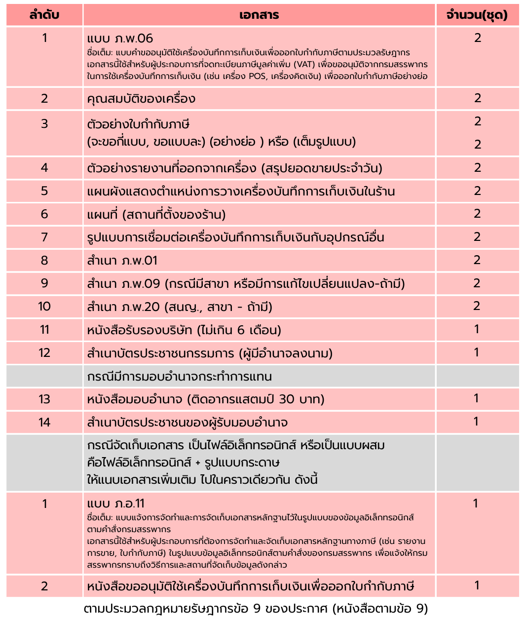 เอกสารหลักๆ ดังต่อไปนี้ เพื่อใช้ในการยื่นคำขออนุมัติใช้เครื่องบันทึกการเก็บเงินกับกรมสรรพากร: