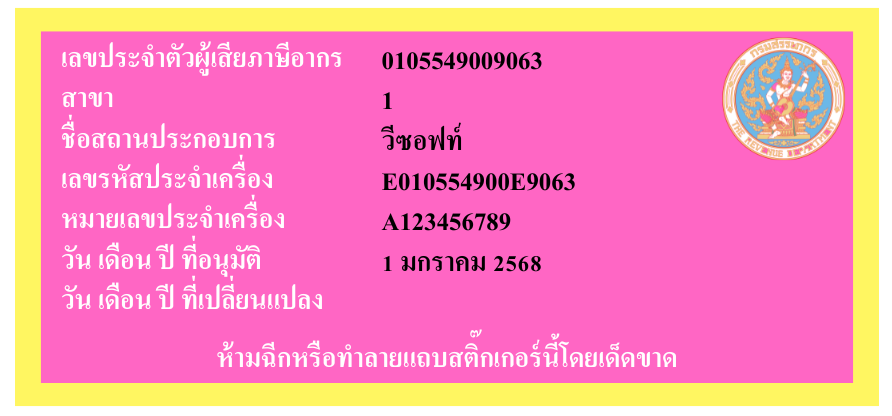 ตัวอย่างสติ๊กเกอร์รหัสประจำเครื่อง POS