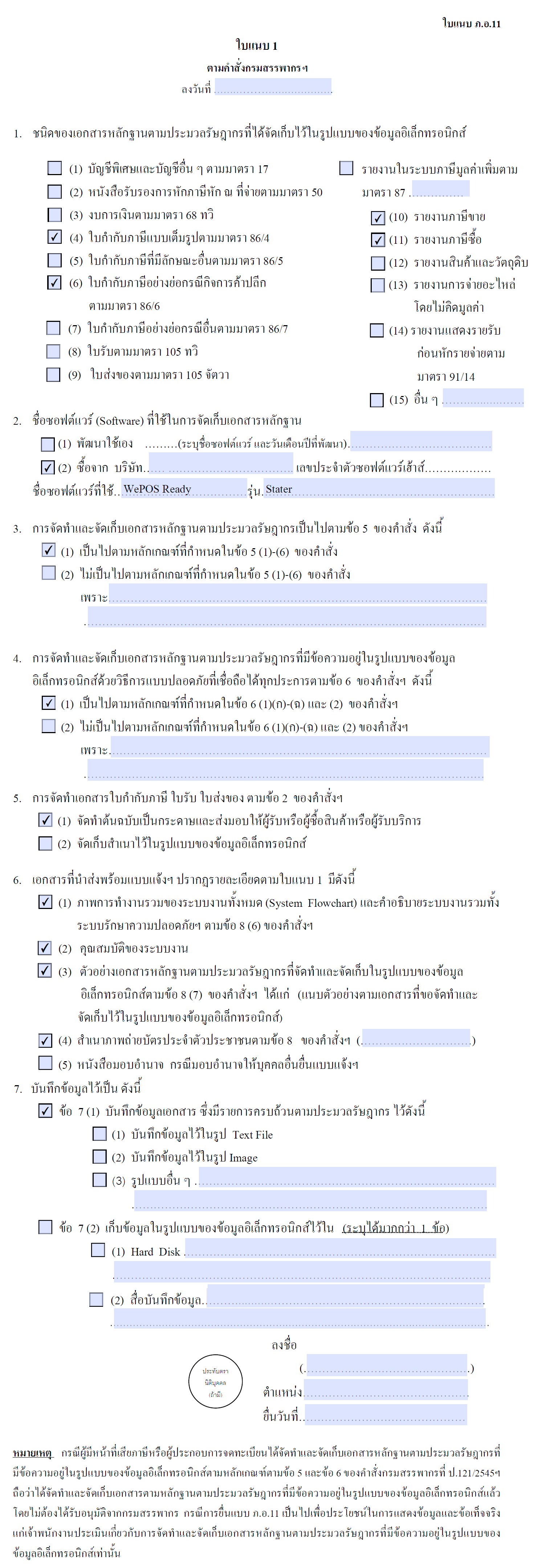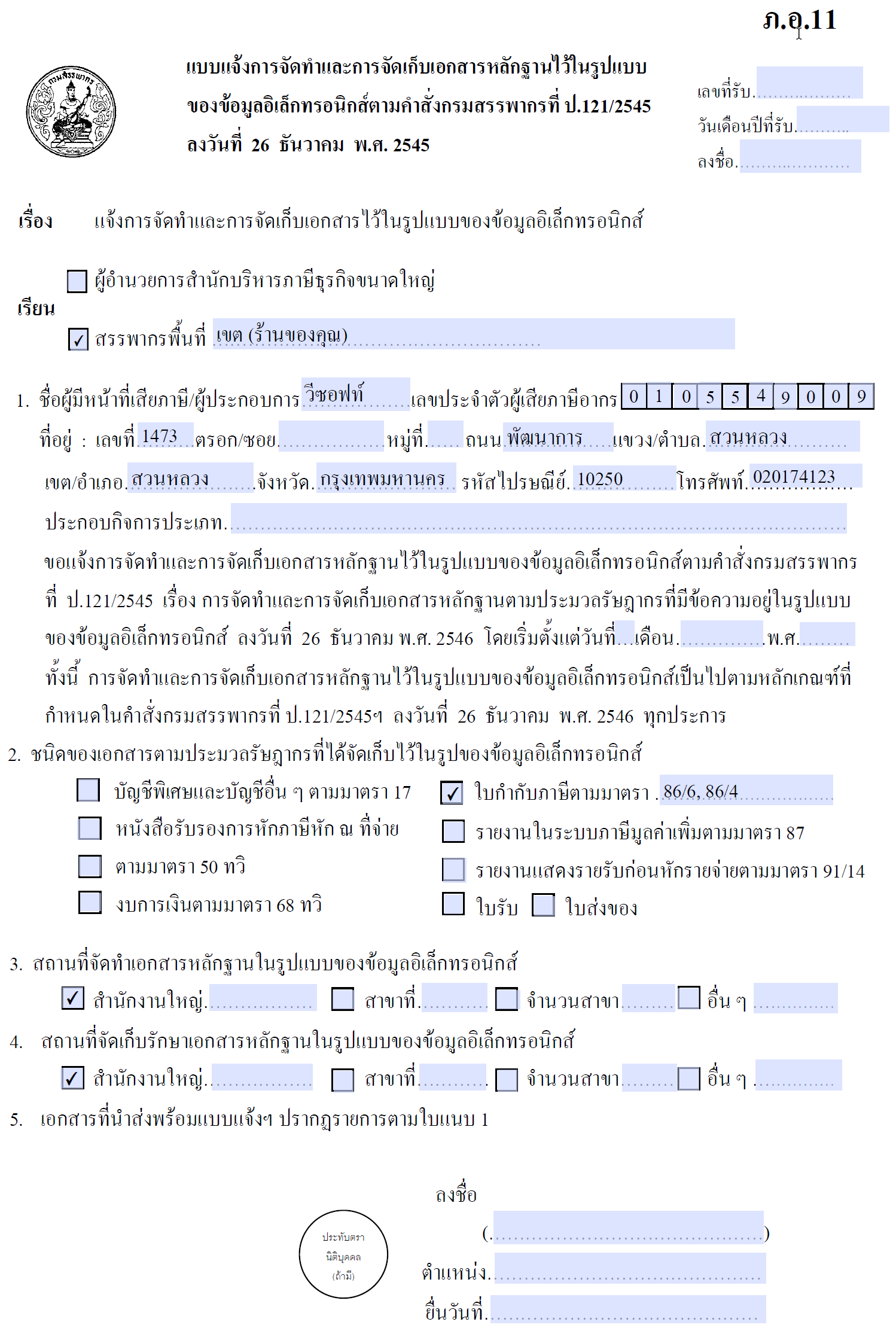 แบบแจ้งการจัดทำและการจัดเก็บเอกสารหลักฐานข้อมูลอิเล็กทรอนิกส์ (ภ.อ.11)